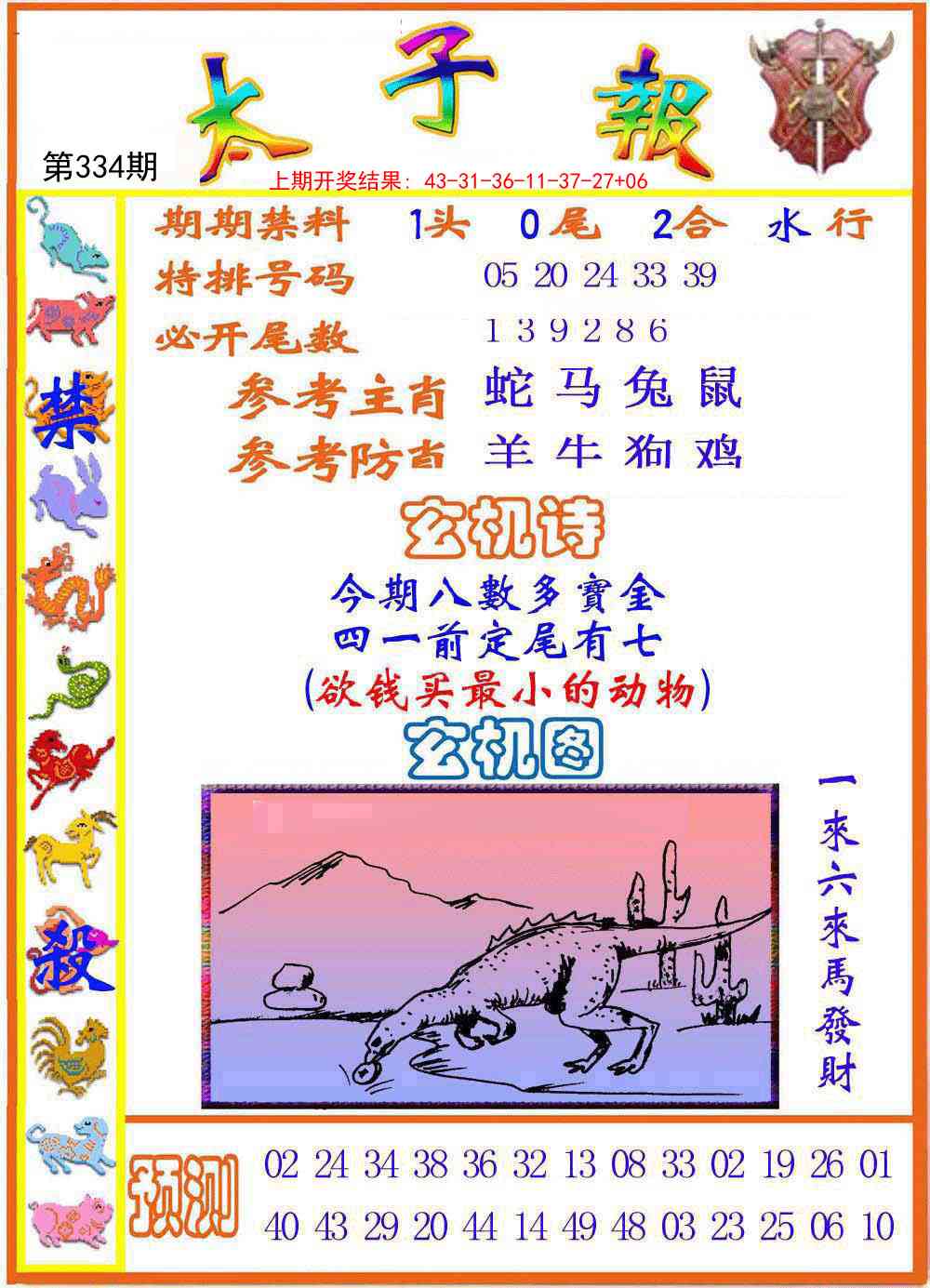 | 334期:⑤肖 | 狗虎猪兔鼠 | 开:?00中 |